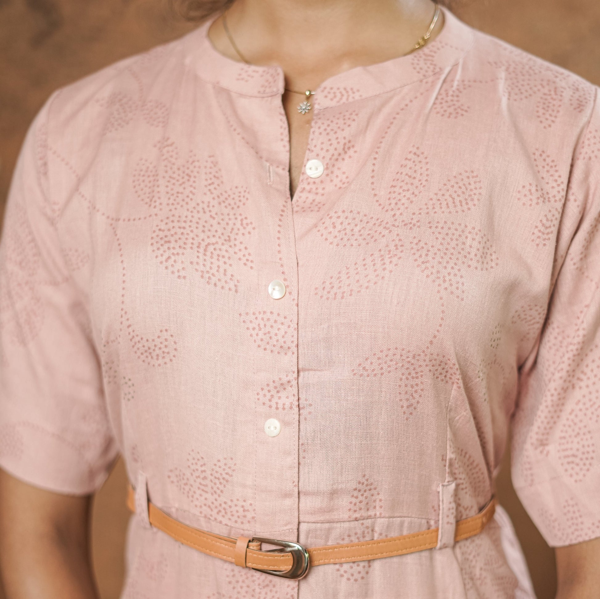 Kobi colour Pure cotton dress Kurti with tan brown solid belt.